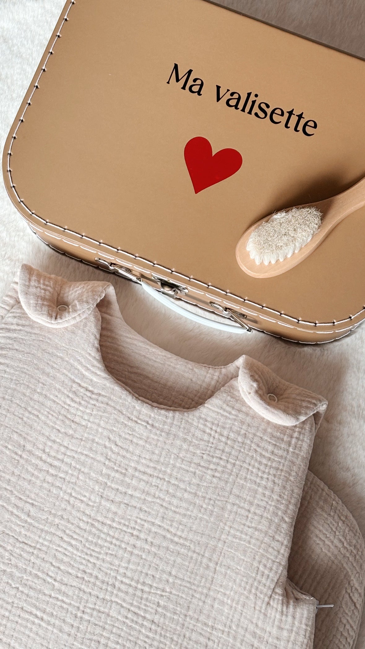 Offrez un cadeau à la fois pratique et rempli d’émotion avec notre Valisette Naissance Personnalisable. Conçue pour conserver les premiers souvenirs de bébé, elle est accompagnée d’un kit naissance tout doux 100 % coton et entièrement personnalisable.